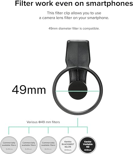 - Filter clip for attaching 49mm lens filters to smartphones